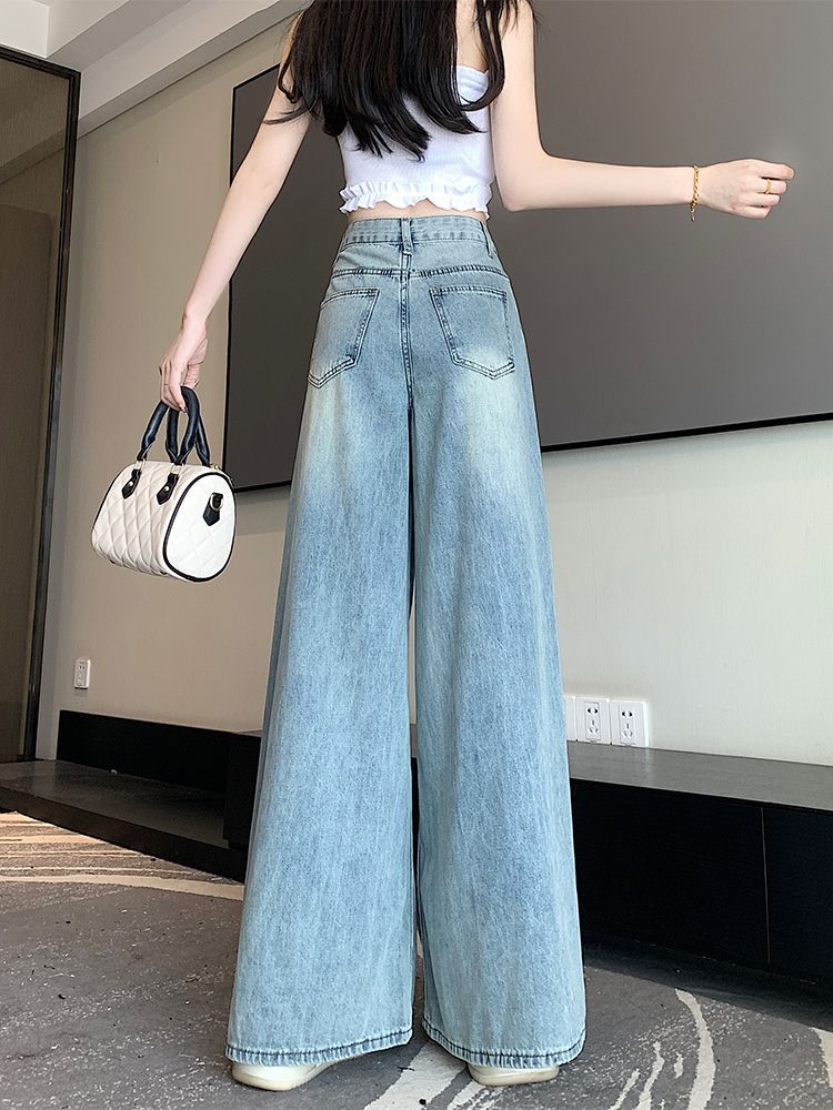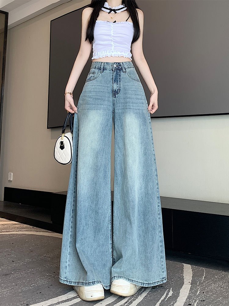 American-Style Light-Wash Wide-Leg Jeans