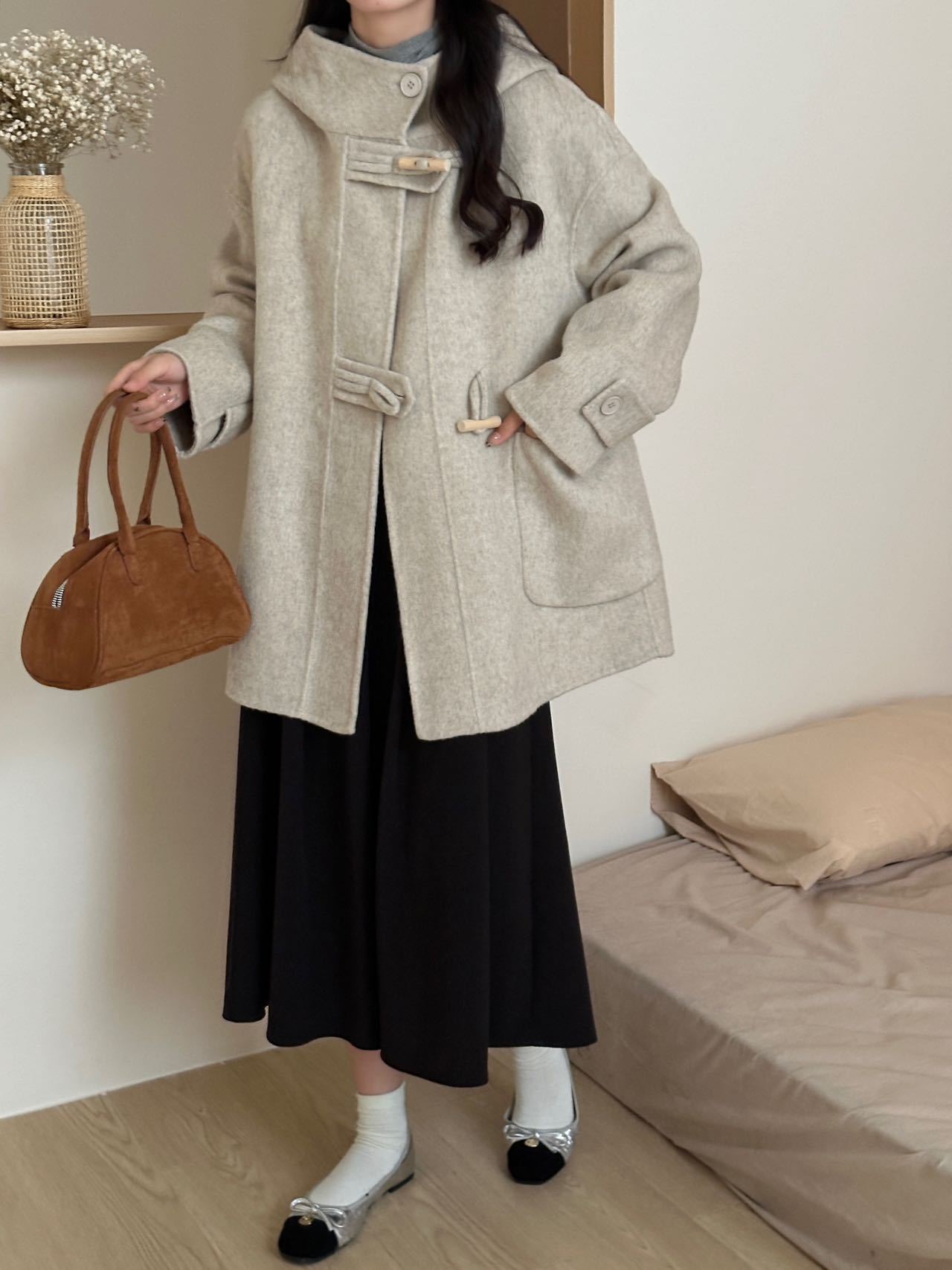 Hooded Loose Double-Faced Wool CoatHooded Loose Double-Faced Wool Coat