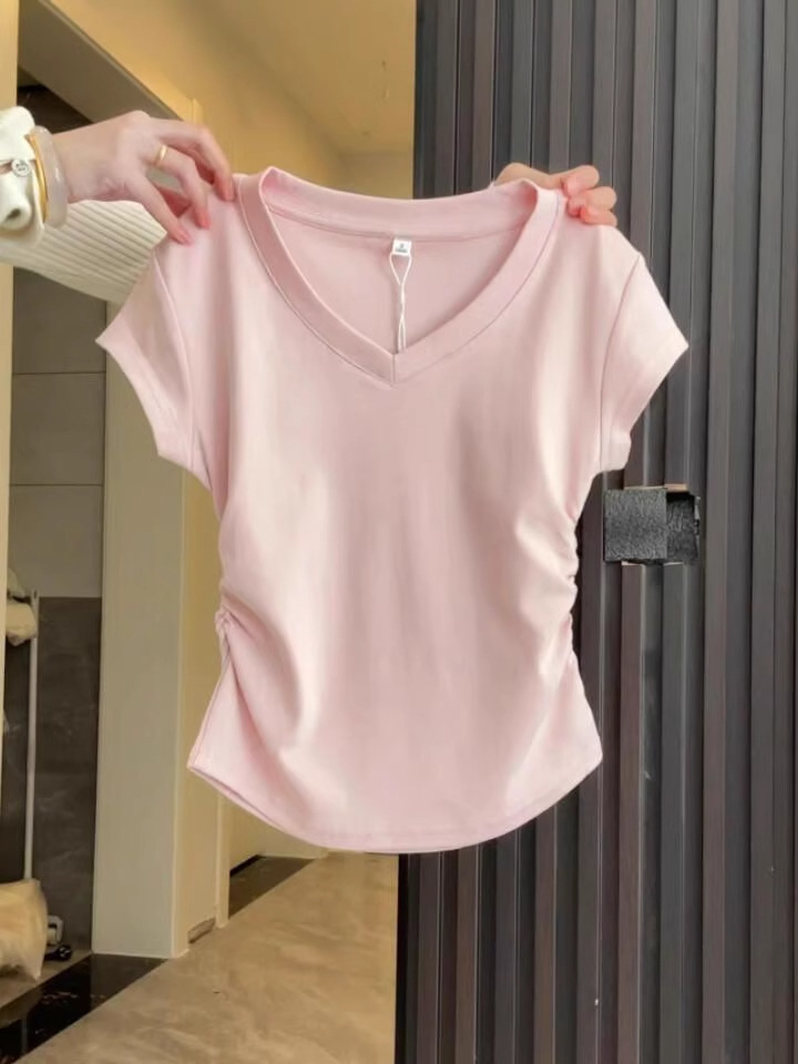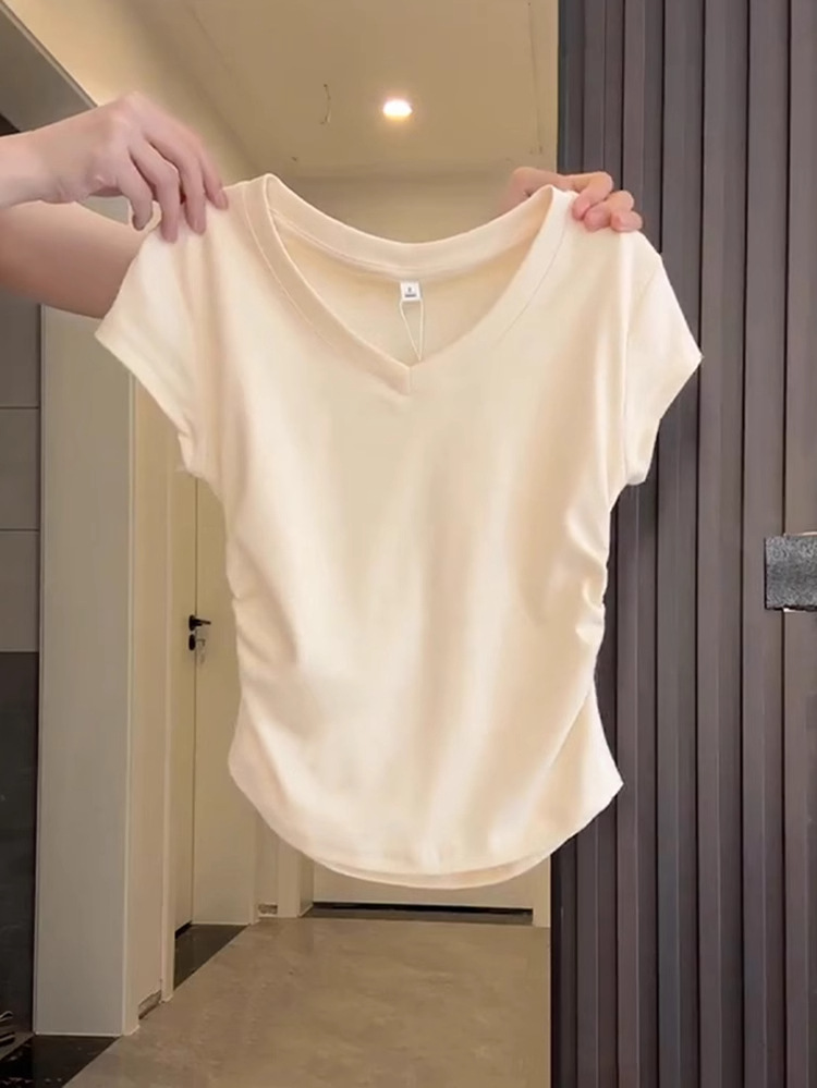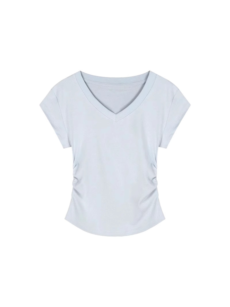 Straight Shoulder V-Neck Short Sleeve